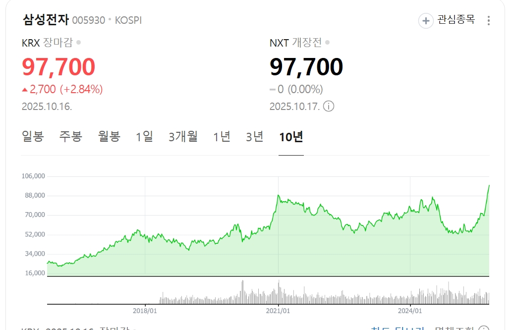 2025년 10월 16일, 삼성전자 주가는 장중 9만6900원을 터치하며 사상 최고가를 갱신했습니다.