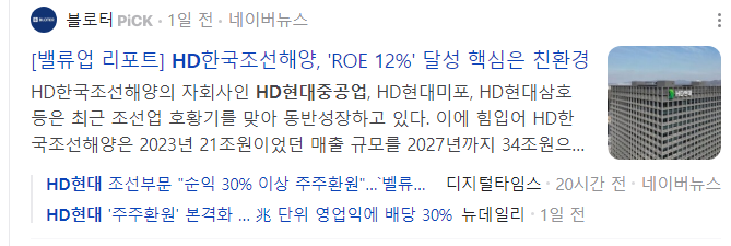 - 특징: 방산 부문에서 특수선 건조 역량을 활용해 안정적인 수익을 확보하고 있습니다.